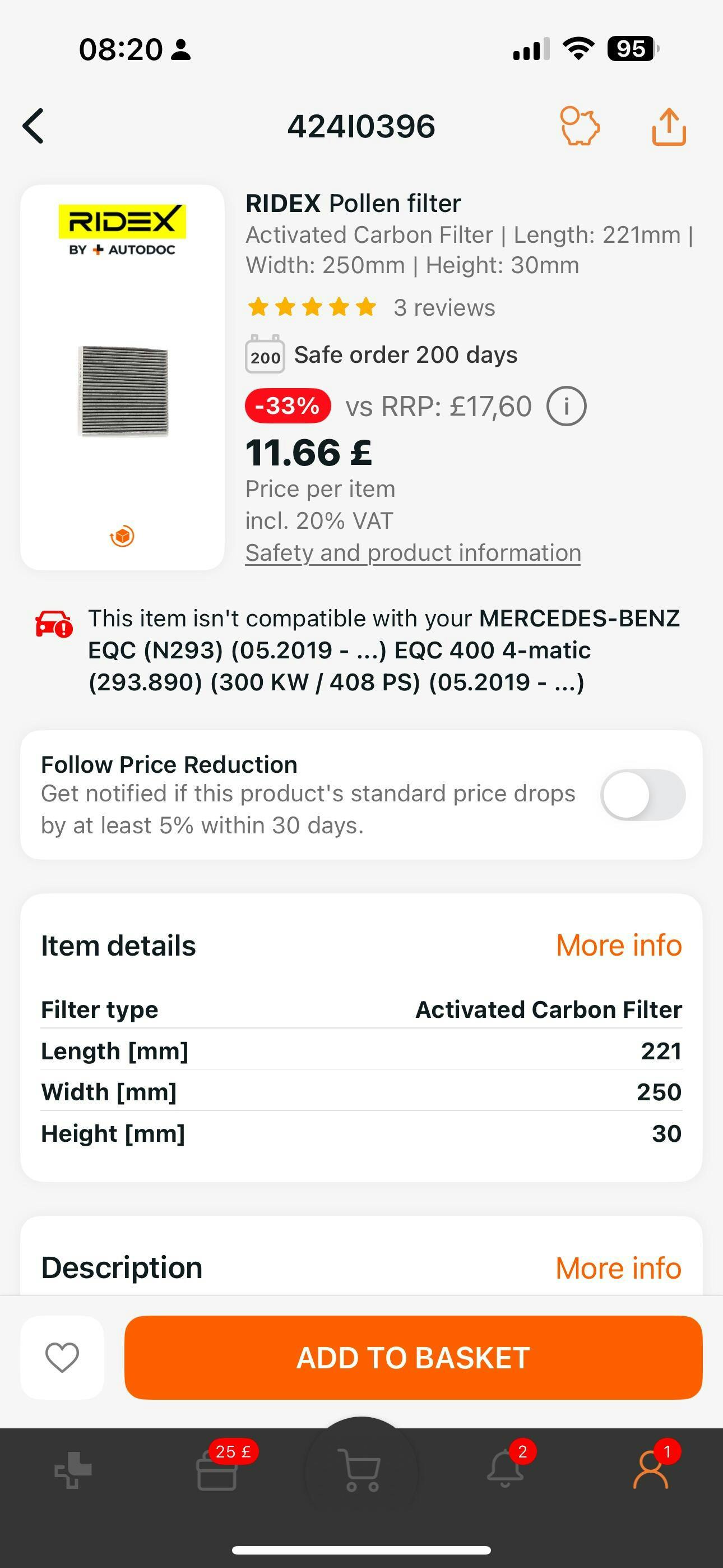 In the meantime, you can dry clean the surface of your filter with any soft brush (do not use water). We have also created a waiting list for customers to receive email notifications when the filter is back in stock. Please send an email to filter@lexent.co.uk to be added to the list.